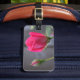 Blumengepäck-Umbau, hübsche rosa Rosen-Blüte und Knospe, personifizieren mit Namen und Rückseite Identifikations-Infos an