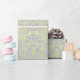 Mein Design zeichnet sich durch ein gemustertes, goldgelbes Blumendesign in einem blau-grauen Hintergrund aus, das Ihrem Geschenkpapier einen lebendigen Look verleiht.