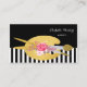 Eine elegante schwarz-weiße Streifen Künstlerstudio Visitenkarte mit einem modischen Imitat goldene Pinsel in Farbe getaucht und mit einem Gewürz von schönen rosa und goldenen Blume verziert. Personalisieren Sie dieses künstlerische Design, indem Sie den Namen des Malers oder Künstlers hinzufügen. Flachdruckbild, keine Goldfolie.