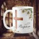 Feiern Sie die wertvollen Momente der Taufe mit unserer Tasse des Blumenkreuzs. Diese charmante Tasse besticht durch ein wunderschönes Blumendesign in Aquarelltönen und ein zartes Kreuz. Sie ist das ideale Geschenk für die Taufe oder Taufe eines neuen Babys. Mit Liebe von unserer Marke Print on Demand, ist es eine wunderbare Möglichkeit, die religiöse Bedeutung dieses besonderen Anlasses zu akzeptieren. Fügen Sie Ihrer täglichen Kaffeekontrolle eine Touch des Glaubens und der Schönheit hinzu!