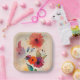 Elegante Teller zeigen ein wunderschönes, blumengeschmücktes Aquarellbild mit orangefarbenem Lavendel, rosa Blume und Grünpflanzen.
