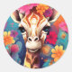 Blumengiraffe Portrait-9321 Runder Aufkleber