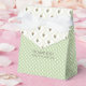 Hübsche grün-weiße Gastgeschenk Hochzeit Geschenkboxen mit einem winzigen Polka Dot Muster und einem Gitter auf der Lasche mit bunten Blume. Personalisieren Sie den braunen Text auf der Vorderseite, um zu lesen, was Sie gewollt haben.