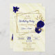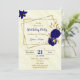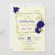 Romantische königsblaue Blumen und goldene Blätter botanischer geometrischer Luxus Geburtstagsfeier