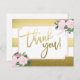 Vielen Dank Karte mit gebürsteter Handschrift, eleganten rosa Aquarellfarben Blume und Imitat Goldfolie. Die Goldfolie der Imitate ist flach bedruckt.