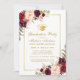 Watercolor Burgunder Marsala und GoldblumenAbschluss-Party Einladungs-Karte - Goldtext - Foto-Rückseite
