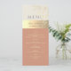 Fügen Sie Ihrem Empfang eine stilvolle Touch mit diesem modernen Hochzeitsmenü hinzu, das in einer eleganten pfirsichfarbenen Terracotta-Palette entworfen wurde. Dieses moderne Design mit Vintagem goldblühenden Spitzen und einfacher Kalligraphie-Schrift verbindet mühelos Eleganz mit charmantem Charme. Ideal für rustikale, böhmische oder romantische Hochzeiten, ist es eine schöne Art, Ihre Speisekarte mit Eleganz und Persönlichkeit zu präsentieren.