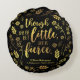 Vervollkommnen Sie für Shakespeare und literarische Fans Eigenschaften dieses Kissens das Zitat von William Shakespeare einem Traum der Hochsommer-Nacht ", obwohl sie aber wenig ist, sie ist heftiges" umgeben durch Blumen und Blätter in der Imitatgoldfolie gegen einen schwarzen Hintergrund.