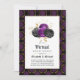 Lila, schwarze und goldene Online-Hochzeitsfeier im Ferne mit Rose und einem Vintagen Damast-Muster.