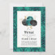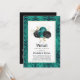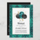 Aquamarine, türkisfarbene, schwarz-goldfarbene Online-Hochzeitsfeier im Ferne mit Rose und einem bedrückten Grunge-viktorianischen Damast-Muster.
