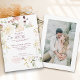 Erzählen Sie Ihr Probe Dinner mit diesen wunderschönen Karten, die "The Night Before" in einer modernen burgundischen Kalligraphie-Skript und dekorative Typografie gegen einen blühte von Blume und Grünpflanzen. Passen Sie Ihre persönlichen Daten auf der Vorderseite und Ihr spezielles Foto auf der Rückseite einfach an.
