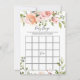 Baby Shower Bingo Spiel. Dieses Design zeigt eine Aquarellillustrierung der pinkfarbenen Aprikosen-Rose und des grünen Blattwerks.