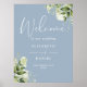 Dieses elegante, staubblaue Grün verlasse das Begrüßungszeichen für Hochzeiten, das mit Ihren Informationen in der schicken Typografie personalisiert werden kann. Entwickelt von Thisisnotme©