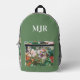 .: Dieser Rucksack hat ein lustiges Design mit tiefgrünem Salbei, das ein gewagtes, antikes Blumendesign auf der Vordertasche ergänzt und die Seiten und den Oberteil umhüllt. Monogramm/ Name sind vollständig anpassbar, auch für Schriftart und Farbe zusammen mit dem Inhalt.