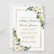 Botanisches Grün und Weiß mit goldfarbenem Rahmen zum Hochzeitsfeiern mit Gold und Grünem Text