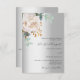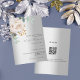 Ein Imitat silber aussehender Hintergrund. Weiße Blume, Blumen, Eukalyptusgrün. Personalisieren Sie Ihre Namen und Details und fügen Sie diese hinzu. Zurück: Fügen Sie Ihre Hochzeitswebsite url zum QR-Code für Details und/oder UAWG hinzu.