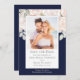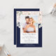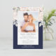 Dieses Save the Date Design bietet blumenfarbene Hochzeiten rustikale, grüne elegante moderne, schlichte Blätter, traditionelle botanische Einladungen, Foto-Bild minimalistisch Vintag, elegante Kalligraphie Schrift Typografie, staubblaue Blüte, Verlobung verlobt zu heiraten, Aquarell Save the Date, Bilderrahmen minimale stilvolle, trendige elegante Romantik mit einem marinefarbenblauen Hintergrund.