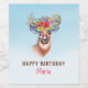 Modernes Wildhirsch mit bunten Blume über Gradientenblau. Optionales Monogramm