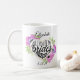 Personalisierte Brautjungfernantrag-Tasse, die Blumenillustrationen um ein Imitatgoldfolienherz kennzeichnet, die Frage knallend