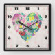 Blumenherz-Illustration in Rosa und Grün Quadratische Wanduhr