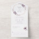 Blumenhochzeit in einer Einladung. Diese stilvolle Hochzeitseinladung und die RSVP-Karte sind weich, verträumt und romantisch. Sie verfügen über einen wunderschönen Aquarellkranz aus Blätter und Blume, die in monochromen Farbtönen in lila, pflaumen und weichen Farbtönen auf einem vergoldeten Rahmen der Rose gemalt werden. Die Rückseite der Einladung enthält ein schönes Muster. Finden Sie passende Artikel in der eleganten Lila Botanischen Hochzeitssammlung.