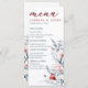 Blumenhochzeit in Rot und Blau der Blume Menükarte