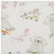 Hübsche, romantische Vögel, Blume und Vogelgeflecht. Heller Aquahintergrund mit weißen Herzen. Größere Druckversion in meinem Geschäft erhältlich.