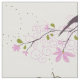 Hübsche, romantische Vögel, Blume und Vogelgeflecht. Heller Aquahintergrund mit weißen Herzen. Kleinere Druckversion in meinem Shop erhältlich.