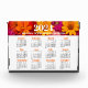 Ein durchsichtiger Acrylblock mit einem Kalender für das Jahr 2024, der die Monate und Ihre Geschäftsinformationen über ein farbenfrohes Foto orangefarbener, rosa und gelber Blüten am oberen Rand enthält. Ideal für Ihren Schreibtisch oder für Kunden und Kunden.