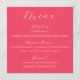 Fügen Sie Ihren Hochzeitstischen einen lebhaften Pop Farbe mit dieser Karte aus dem blühenden Rosa-Quadrat hinzu. Dieses Menü mit elegantem, weißem Drehbuch auf feinem Hintergrund und einem weichen Blumendesign auf der Rückseite verleiht Ihrem Frühling- oder Sommerfest stilvollen Charme. Eine perfekte Touch für Ihren Empfang.