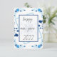Blumenkarte für das neue Jahr, blaue Karte für das