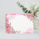 Die Karte wird in Weiß mit einem schönen rosa Blumendruck angezeigt. Passen Sie diese Karte an und fügen Sie einen Namen hinzu oder kaufen Sie, wie es ist. Die Umschläge beinhalteten das Archivbild freepik.com