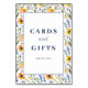 Dies ist ein Bild im Blumenstil mit einer entzückenden Anordnung farbenfroher Blumen in Orangetönen, Gelb, Blau und Weiß. Die lebendigen Blüten umrahmen ein zentrales weißes Feld mit eleganter Navy-Schrift, die "CARDS und GIFTS" gefolgt von "THANK YOU" lautet. Es strahlt Wärme und Dankbarkeit aus und ist somit perfekt, um Wertschätzung durch durchdachte Karten oder Geschenke auszudrücken. Die Komposition wirkt einladend und fröhlich, ideal für besondere Anlässe oder herzliche Gesten.