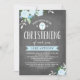 Individuelle Weihnachtseinladung mit Foto mit Aquarellfarben-Blume auf einem Chalkboard-Hintergrund.
