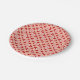 Teller in Kimono-Schrift, dunkelchinesisch, rot und weiß, auf pfirsichrosa/korallenfarbenem Hintergrund - digitale Grafik in gemischten Medien, inspiriert durch ein traditionelles japanisches Kimono-Gewebe
