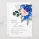 Blumenkobalt Blauer Rosa Garten Elegante Hochzeit Einladung