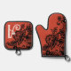 Modernes, blumengeschmücktes oder Blume-Spitzen-Image auf diesem Ofen Mitt Set, personalisiert mit Ihrem Monogramm oder anderen Text und Auswahl von Schriftart, perfekt zum Kochen, Backen und andere Küchen Abenteuer.