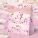 Niedliche rosa japanische Kirschblüten Zweige. Passen Sie diese Blumenfavorit-Box mit einem Namen an. Die rosa Cremetüle des blühenden Zweiges der japanischen Kirsche gelten als Hoffnungszeichen und werden als viel Glück-Charme für neue Anfänge bekannt. Haben Sie schon einmal gewollt, Ihren Lieben etwas ganz besonderes, mit all Ihren Gefühlen verpackt zu schenken? In diesem Fall kann die Cherry Blossom Gunst Box die perfekte Lösung sein. Als nationale Blume Japans werden Kirschblüten seit Jahrhunderten benutzt, um die Bindung zwischen den Menschen zu repräsentieren und als Hoffnungsstrahl zu dienen.