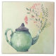 Die schöne Aquarellbild zeigt einen großen grünen Teekessel mit Beerenfedern und Zweigen von Blätter auf abstraktem Waschhintergrund