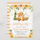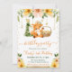 Elegantes Watercolor Floral Woodland Fox Design mit Herbstorange und gelben Blumen mit goldenem Konfetti und Streifen Hintergrund