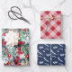 Blumenkranz kariert-blaue Weihnachtsfeiern Geschenkpapier Set