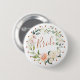 Eleganter "Bride"-Button mit Blumenkranz in Aquarellfarben aus Rose in Pastellcreme und Pfirsichfarben, grünes Blattwerk und Polka-Dot