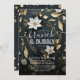 Moderne Vintage Elegante Brunch und Bubbly Bridal Shower Einladung - eleganter Schwarz-weißer und goldener Blumenreath. Diese Designs können für Ihren Besondere Anlass Personalisiert sein und wären perfekt für Ihre Hochzeit, Brautparty, Engagement Party, Geburtstagsparty und viele weitere Besondere Anlässe.