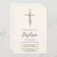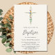 Diese stilvolle Blumen-Taufeinladung ist mit einem Wildblume-Kreuz und Schrift-Typografie dekoriert. Einfach anpassbar. Original Wasserfarbe © Michele Davies.
