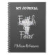 Blumenkreuz mit Christlichem Zitat Notizbuch / Tagebuch. "Glaube über Angst". Blasspastellfarbenes lila Blumenkreuz. Christliches Design.