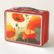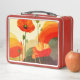 Erhellen Sie Ihren Tag mit dieser lebendigen Blumen-Lunchbox mit auffälliger Mohn-Kunst in reichen Rot-, Orange- und Gelbtönen.