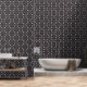 Hübsche stilisierte Blume und Äste mit kleinen Blätter in Rosa und Creme auf schwarzem Hintergrund umgeben rosa Gabel, Löffel, Tischmesser und Whiskys, um eine charmante Blumenkoche und ein Essmotiv zu machen, perfekt für die Küche, die Rückseite von Regalen, im Innern von China oder Esszimmer, oder sogar eine kulinarische Schule.