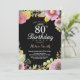 Floral 80. Geburtstag Einladung für Frauen. Aquarellfarben Blütenfarben, Rosa, schwarzer Chalkboard-Hintergrund. 13. 16. 18. 21. 30. 40. 50. 60. 70. 80. 90. Jedes Alter. Für weitere Anpassungen klicken Sie bitte auf die Schaltfläche "Anpassen" und verwenden Sie unser Designwerkzeug, um diese Vorlage zu ändern.