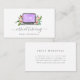 Das wunderschöne Design für Lehrer und Lehrer, die sich auf virtuelles Nachhilfe, Fernunterricht oder Online-Unterricht spezialisieren, umfasst eine Laptop-Illustration in Aquarellfarben, flankiert von Blumensträuchern aus rosa Blume. Passen Sie die Vorderseite mit zwei Textzeilen in handgeschriebenen Skripten und klassischen Serifenschriften an, und fügen Sie Ihre Initialen oder Monogramme zum lila Bildschirm des Notebooks hinzu. Fügen Sie Ihre Kontaktinformationen auf der Rückseite hinzu.