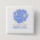 Eleganter grafischer Blumenmädchen Posy des blauen stylized Rosen-Button-Knopf-Abzeichens. Liest Blumen-Mädchen Abigail oder personifiziert mit Ihren Blumenmädchennamen. Groß für Brautpartys, wedding Proben oder Gastgeschenk Hochzeit hinzuzufügen bauscht sich.